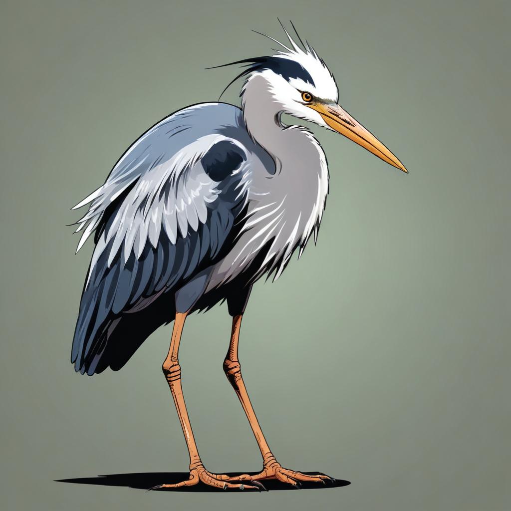 animal, art, avian, background, beak, bird, digital, drawing, feathers, gray, green, heron, illustration, legs, long, nature, neck, standing, wild, wildlife