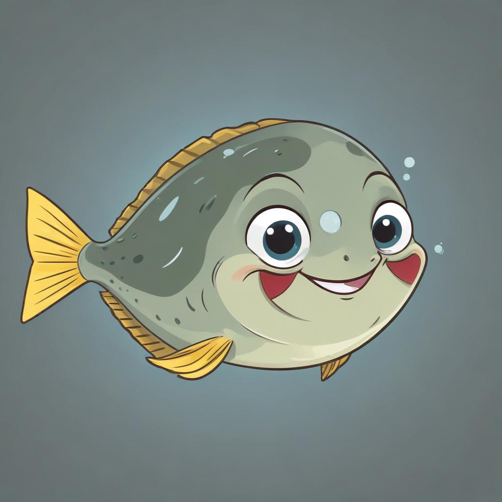 A cartoon fish smiles happily while swimming