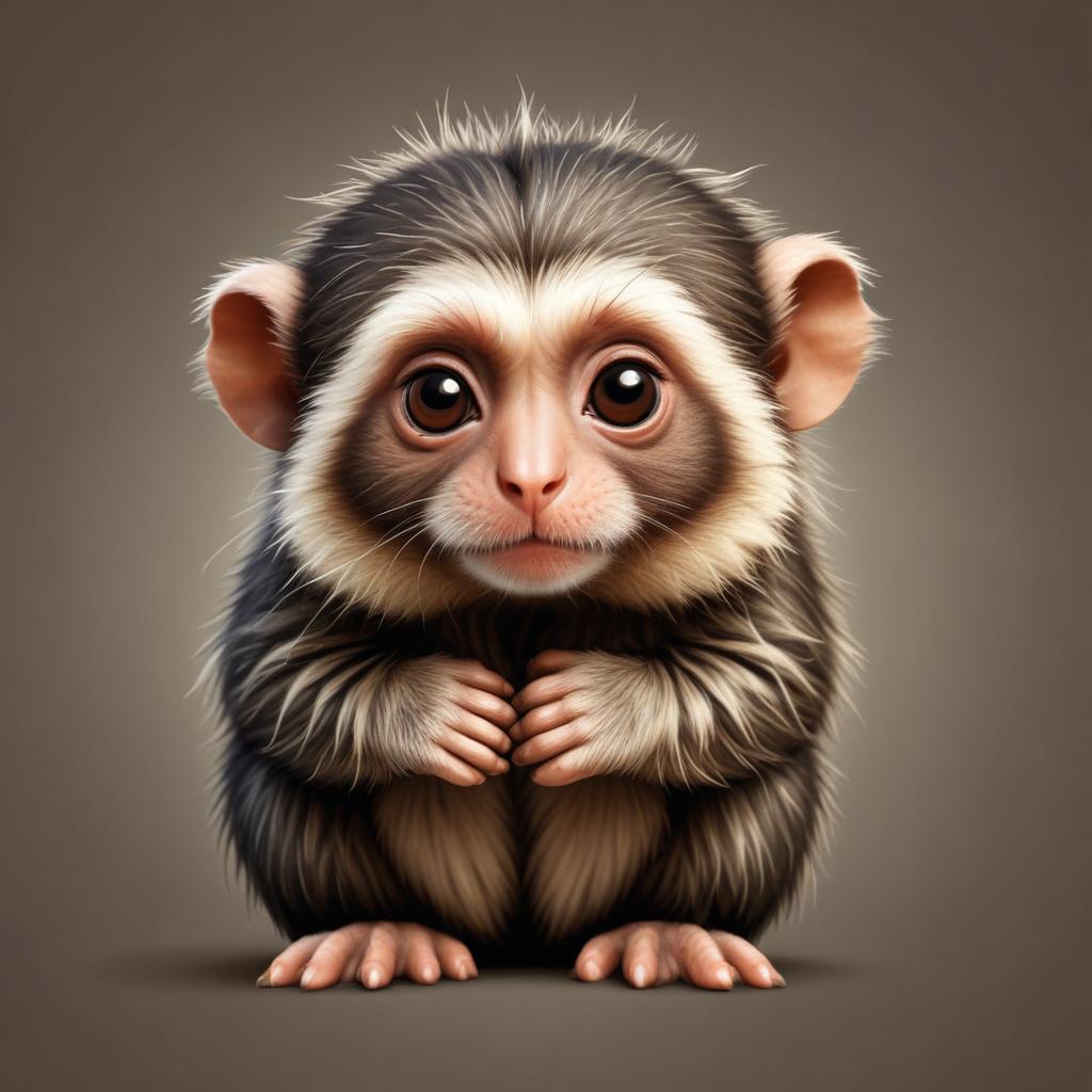 animal, art, baby, brown, camera, clasped, cute, digital, eyes, front, fur, hands, illustration, looking, mammal, monkey, primate, sitting, small, white