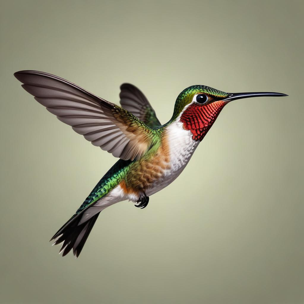 A hummingbird in flight with its wings spread