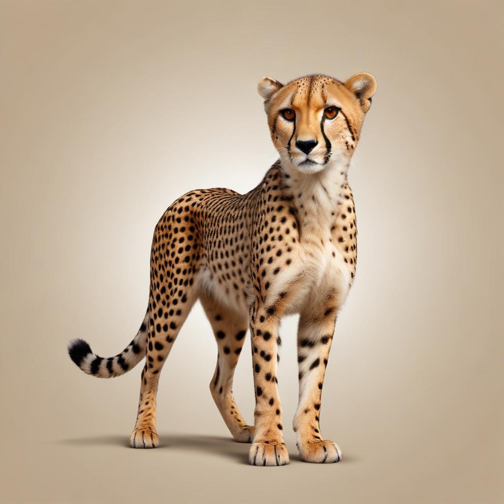 A cheetah stands on a beige background