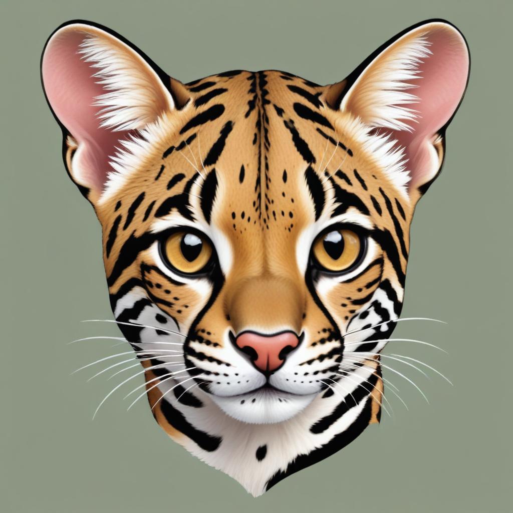 A digital illustration of an ocelot's head, showcasing its distinctive spotted pattern, large ears, and bright eyes.