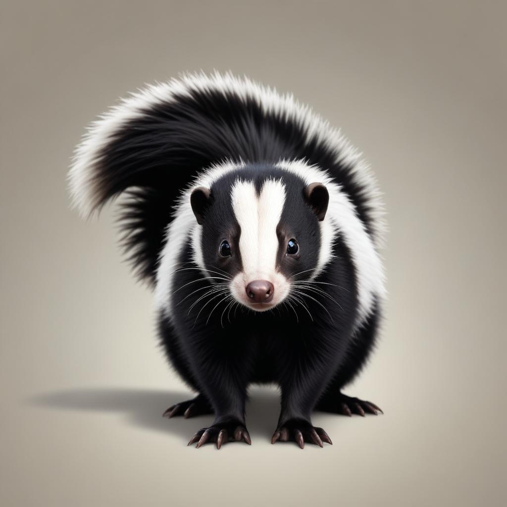 A black and white skunk stands on a light brown background