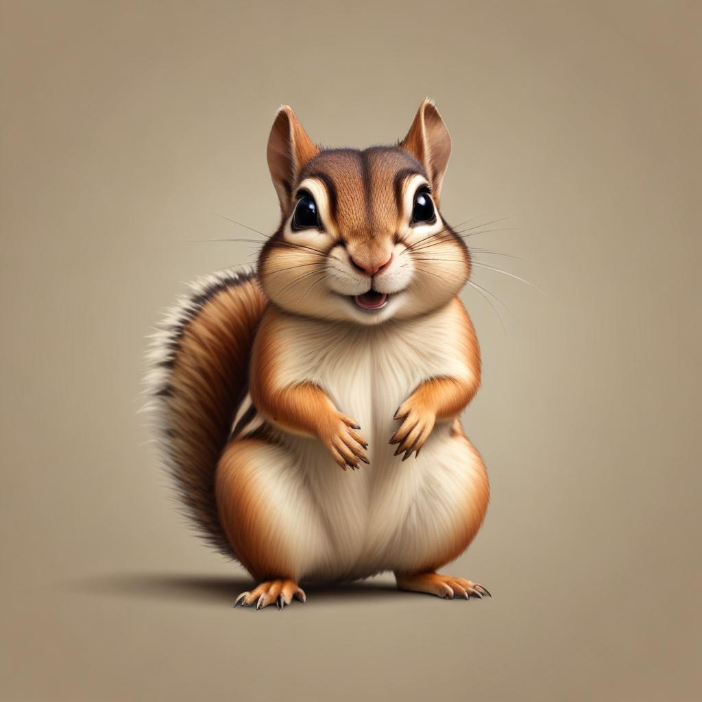 adorable, animal, art, background, brown, cartoon, chipmunk, cute, digital, fur, happy, illustration, neutral, paws, rodent, smiling, squirrel, standing, tail, white