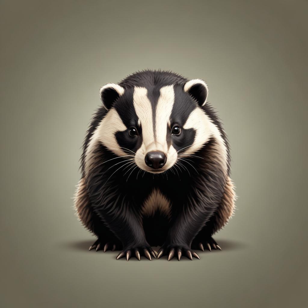 A badger sits on a gray background