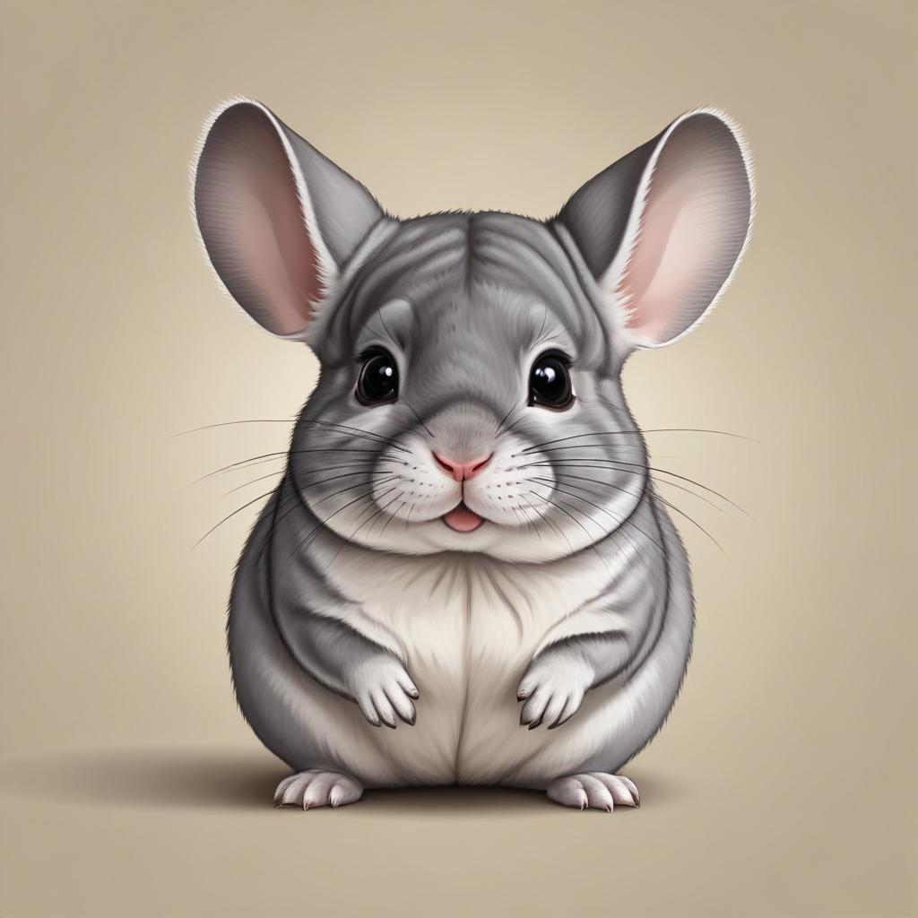 A cartoon illustration of a gray chinchilla with large ears and big eyes. It is sitting upright with its paws in front of it
