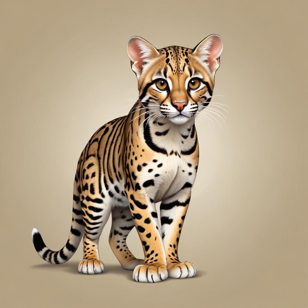 animal, background, carnivore, cat, feline, fur, kingdom, mammal, mammalia, nature, ocelot, paw, pose, predator, spotted, standing, tail, wild, wildlife, young