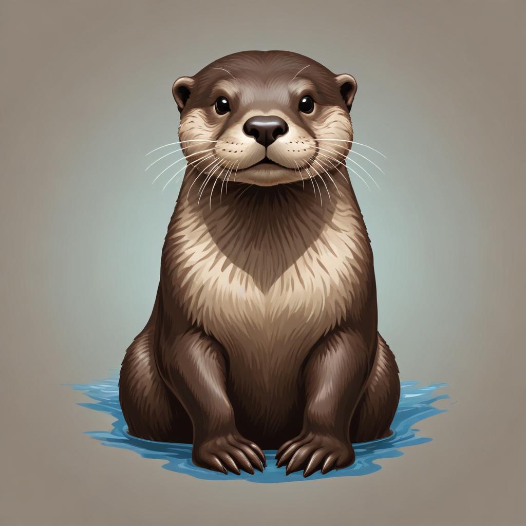 A brown otter is sitting in a pool of water. It is looking directly at the viewer with a playful expression.