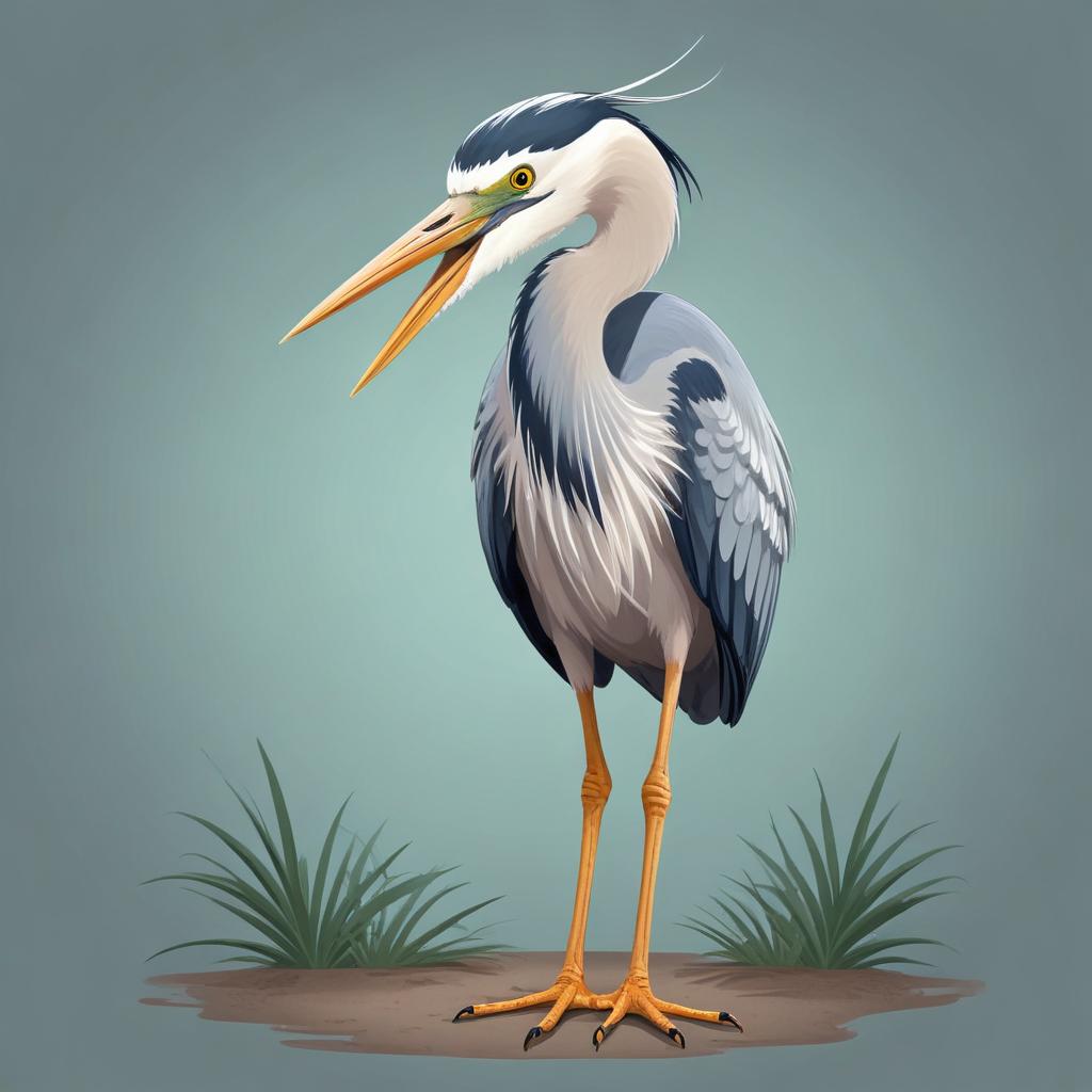 animal, beak, bird, birdwatching, drawing, feathers, grey, ground, heron, illustration, legs, long, natural, nature, neck, open, setting, standing, white, wildlife