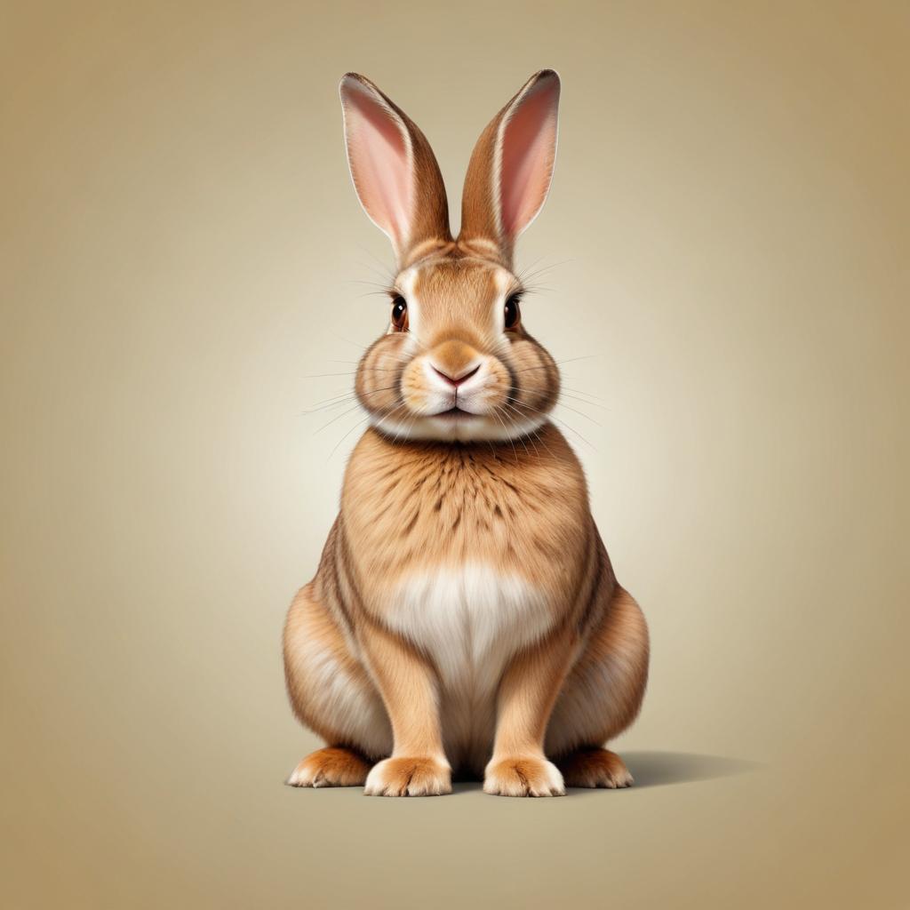 A brown rabbit sits on a beige background