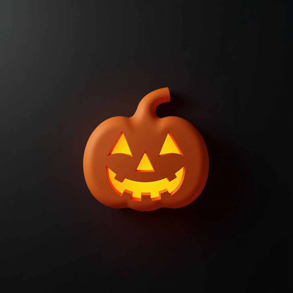 Happy jack-o'-lantern glows on black background