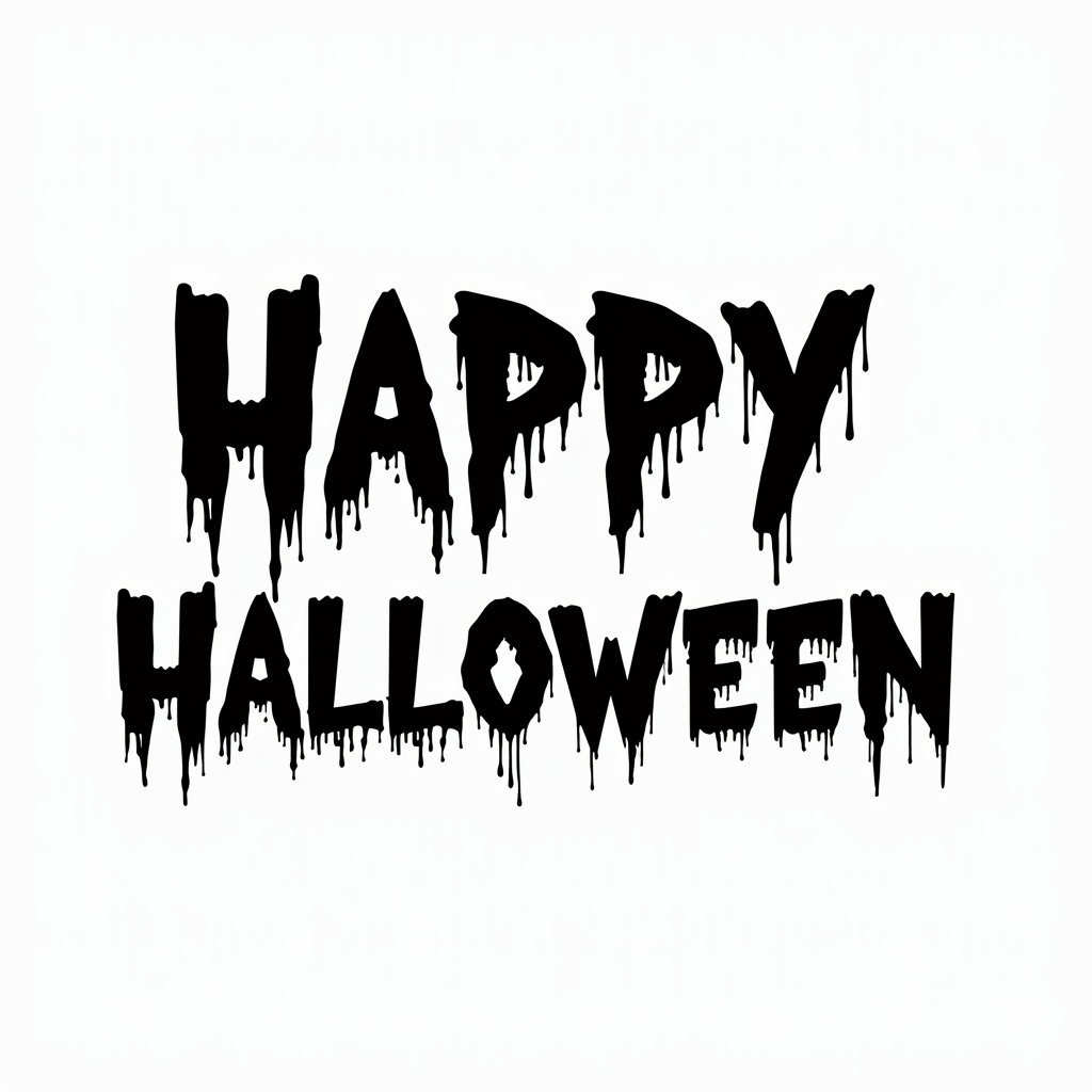 A black and white image of the words Happy Halloween with dripping letters.