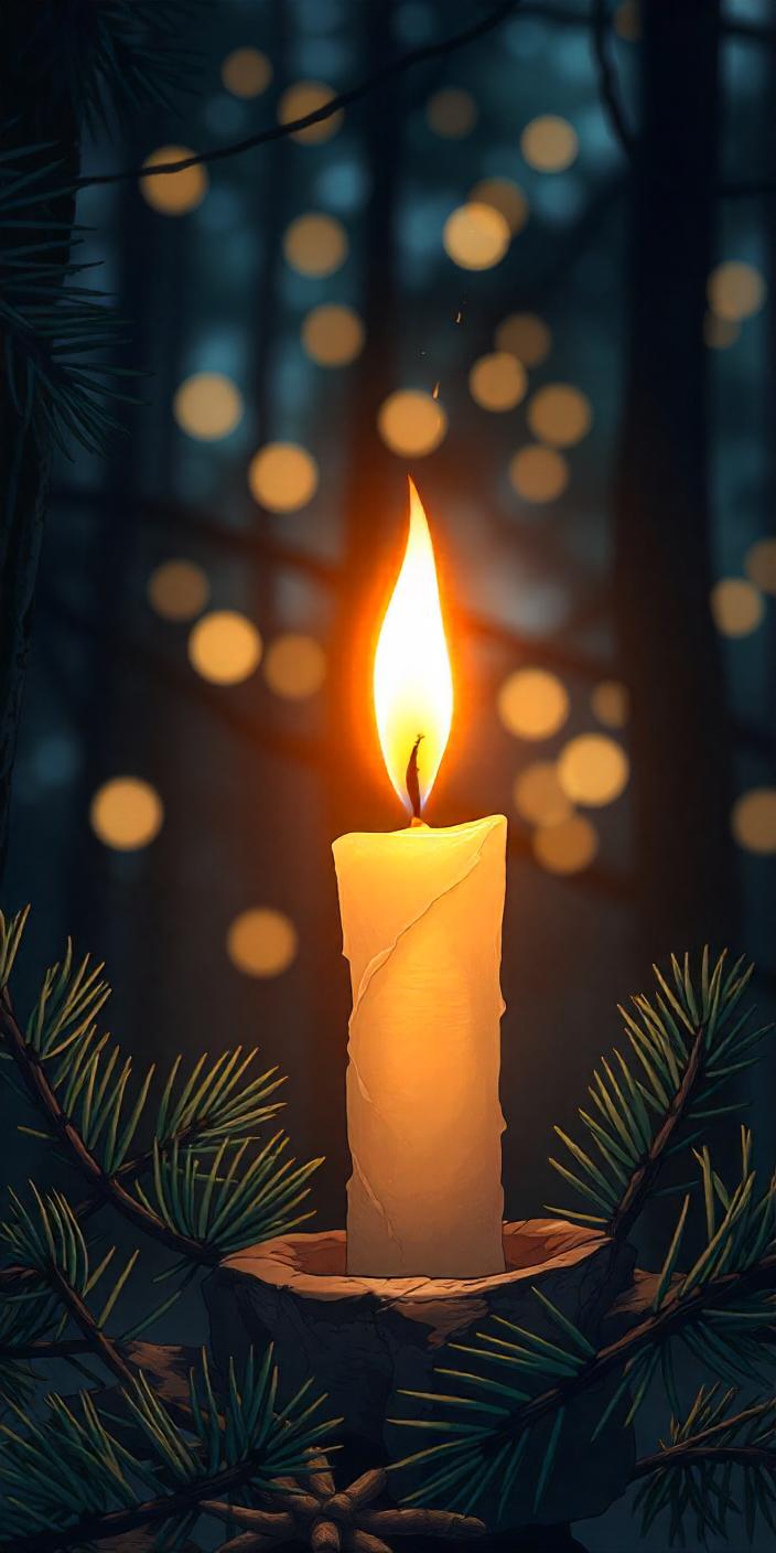 burning, candle, candlelight, cozy, dark, flame, forest, glow, light, magical, nature, night, outdoors, peaceful, pine, romantic, tree, warm, wood, woods