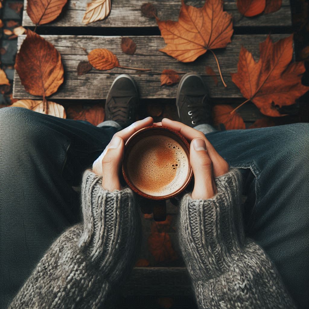 A warm drink on a crisp autumn day