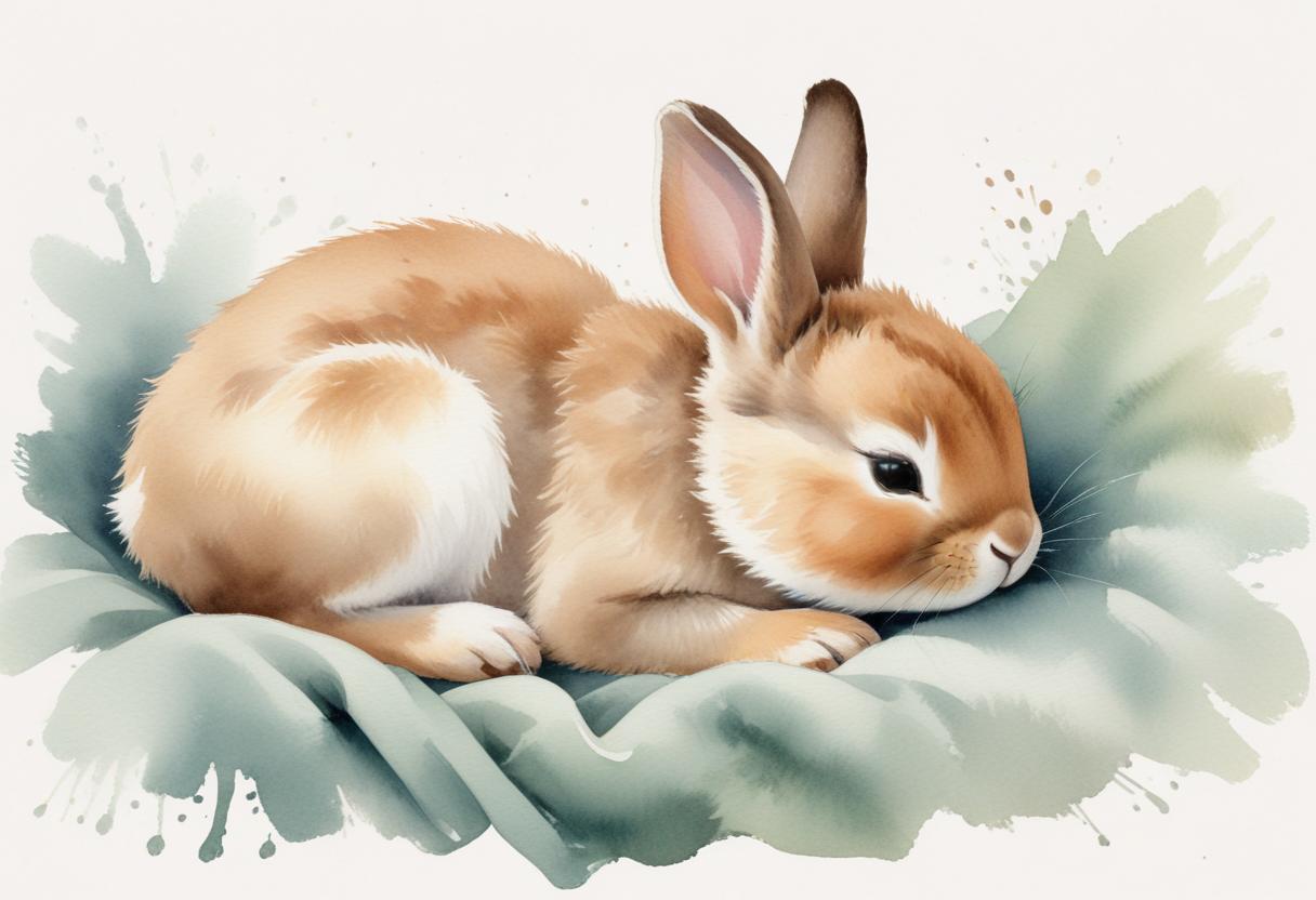 animal, background, brown, bunny, closed, cushion, cute, ears, eyes, fur, green, nap, peaceful, pet, pillow, rabbit, sleep, soft, watercolor, white