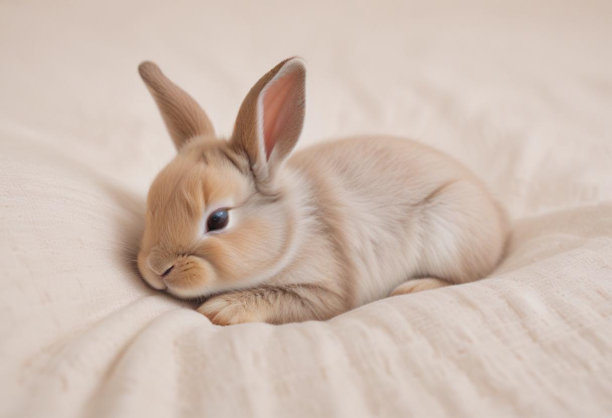 adorable, animal, brown, bunny, cute, domestic, ears, eyes, fluffy, furry, macro, nap, paws, pet, pillow, rabbit, resting, sleep, soft, white