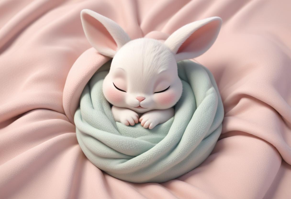 adorable, animal, blanket, blue, bunny, cozy, cuddly, cute, eyes, fluffy, furry, pet, pink, rabbit, sleep, sleeping, small, soft, sweet, white
