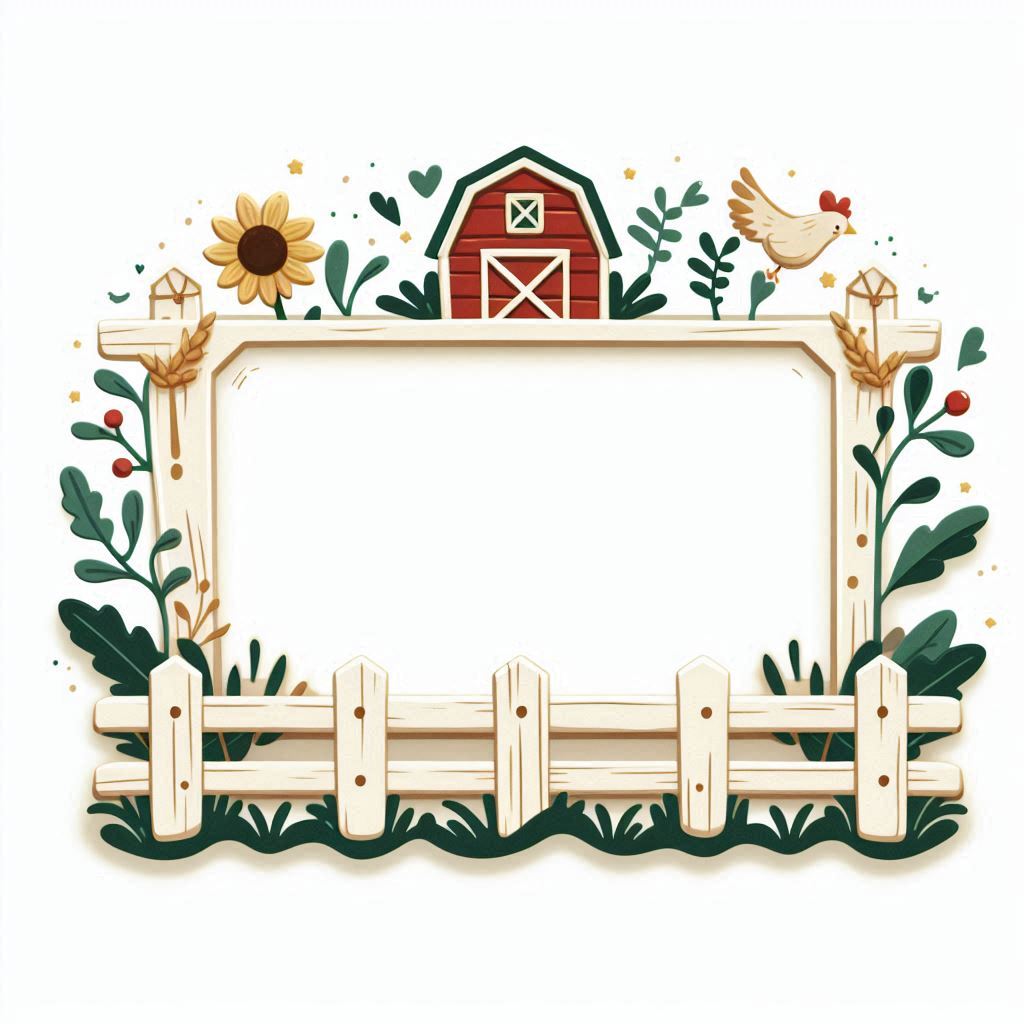 background, barn, border, clipart, country, design, farm, fence, frame, graphic, greenery, illustration, picket, red, rustic, sunflower, template, vector, vintage, white