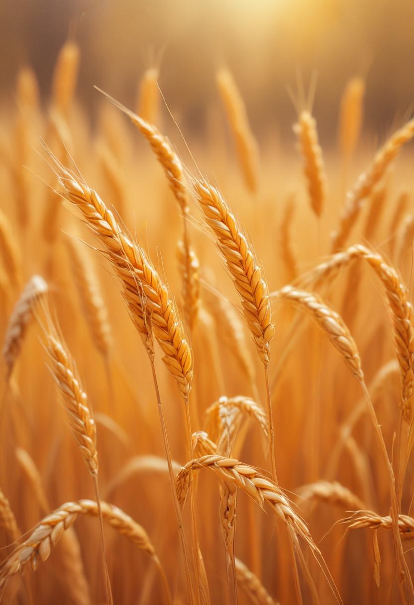 Golden wheat stalks sway in the summer sun