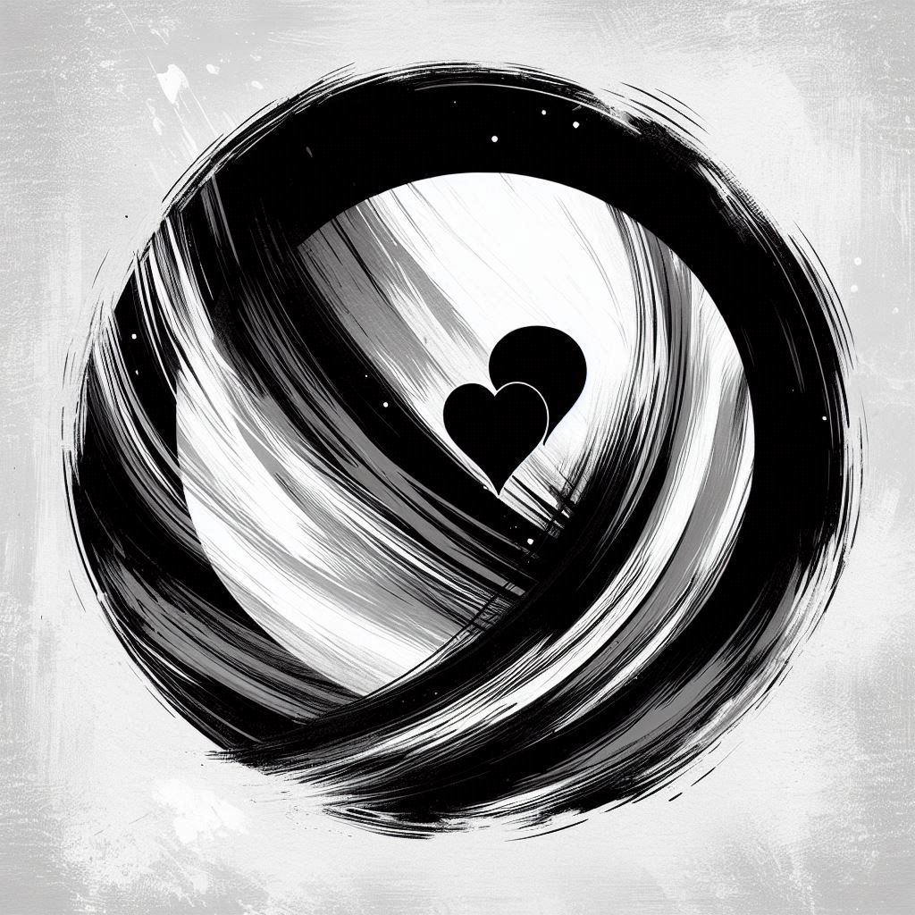 A black and white brush stroke heart design