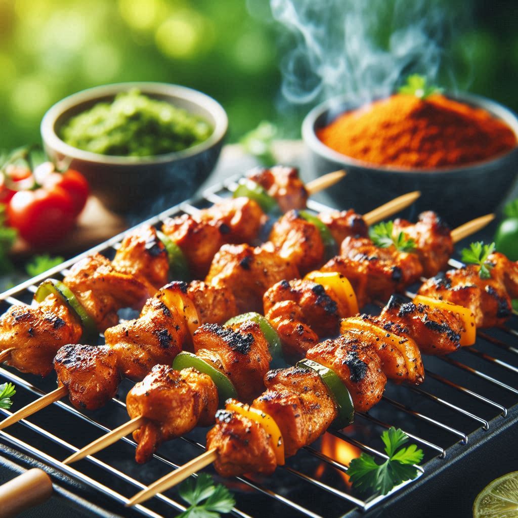 barbecue, bbq, chicken, cooking, delicious, fire, flame, food, green, grill, grilling, meal, outdoor, peppers, prep, skewers, smoke, summer, tasty, yellow