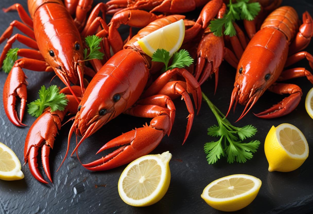 appetizer, black, cilantro, cooked, cuisine, delicious, dinner, food, fresh, gourmet, healthy, lemon, lobster, meal, parsley, plate, restaurant, seafood, surface, wedges