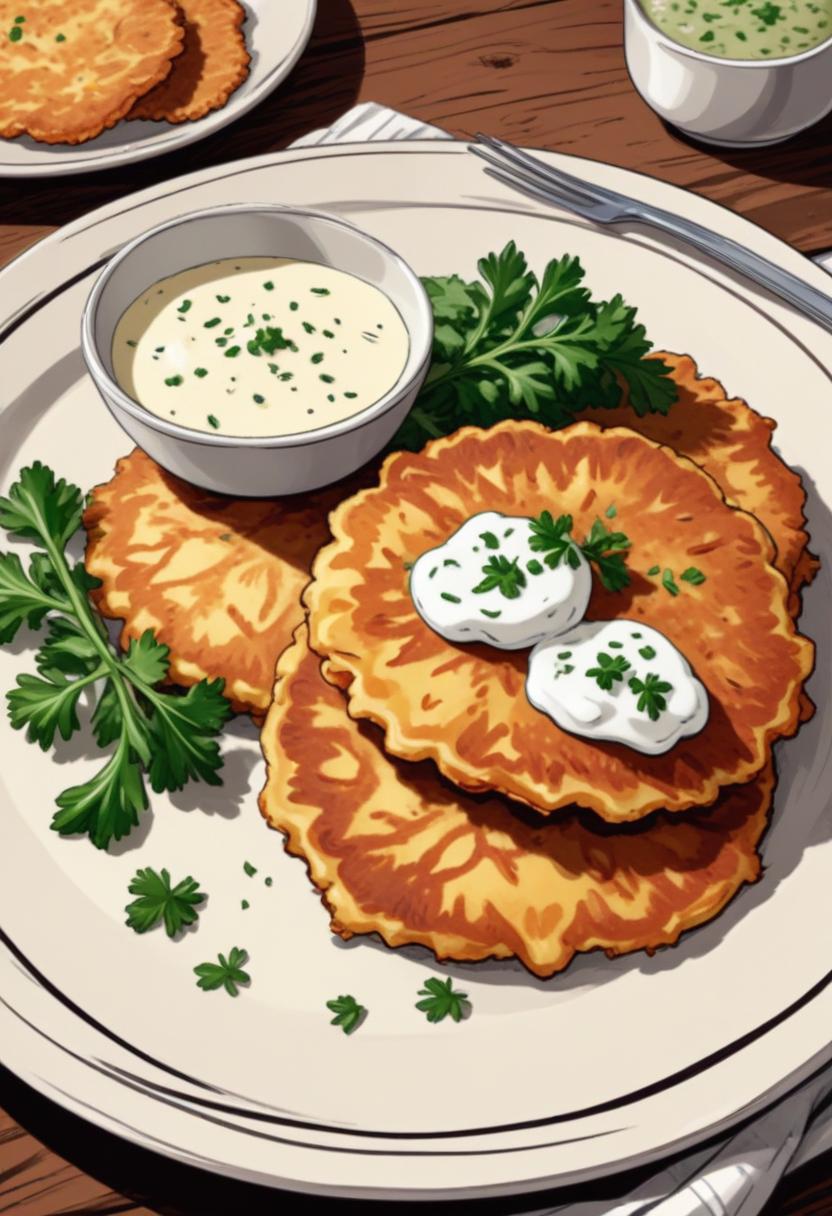 Crispy potato pancakes with sour cream and parsley