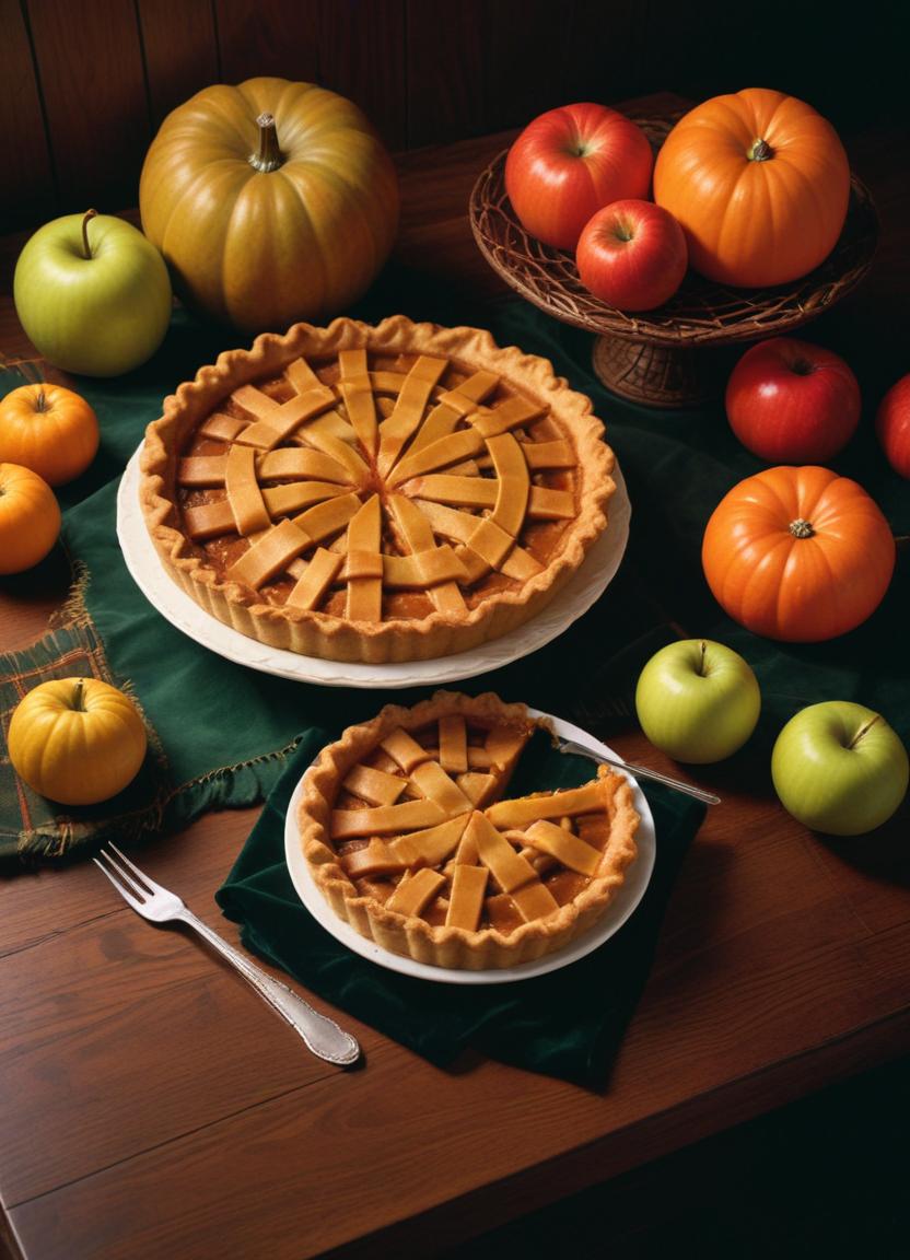 apple pie, apples, autumn, baked, delicious, dessert, fall, food, fork, fruit, harvest, homemade, pastry, pie, pumpkins, sweet, table, thanksgiving, treat, wooden table