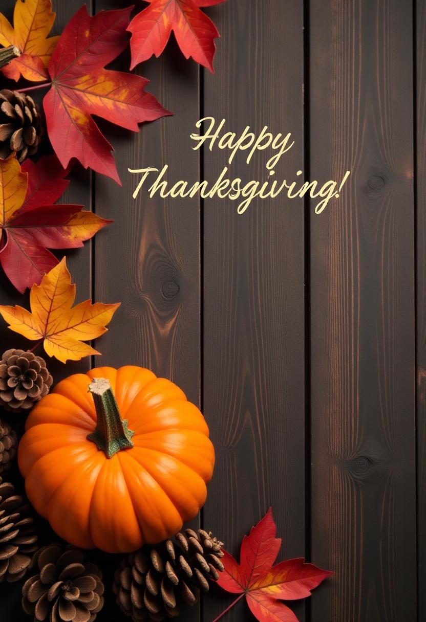 autumn, background, celebration, decor, fall, food, greeting, greeting card, happy, harvest, holiday, leaves, november, october, pine cones, pumpkin, season, table, thanksgiving, wood
