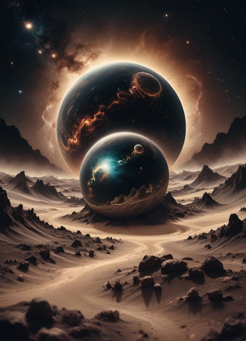 artwork, astronomy, celestial, cosmic, desert, digital art, fantasy, fiction, galaxy, illustration, landscape, night, outer space, planet, planets, science, sky, space, stars, universe
