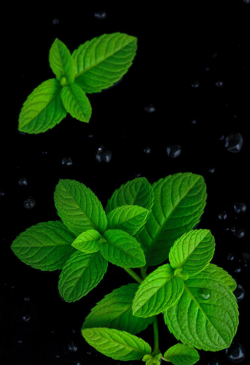aroma, background, black, culinary, drink, droplet, foliage, fresh, green, herb, herbal, ingredient, leaves, mint, nature, organic, plant, sprig, tea, water