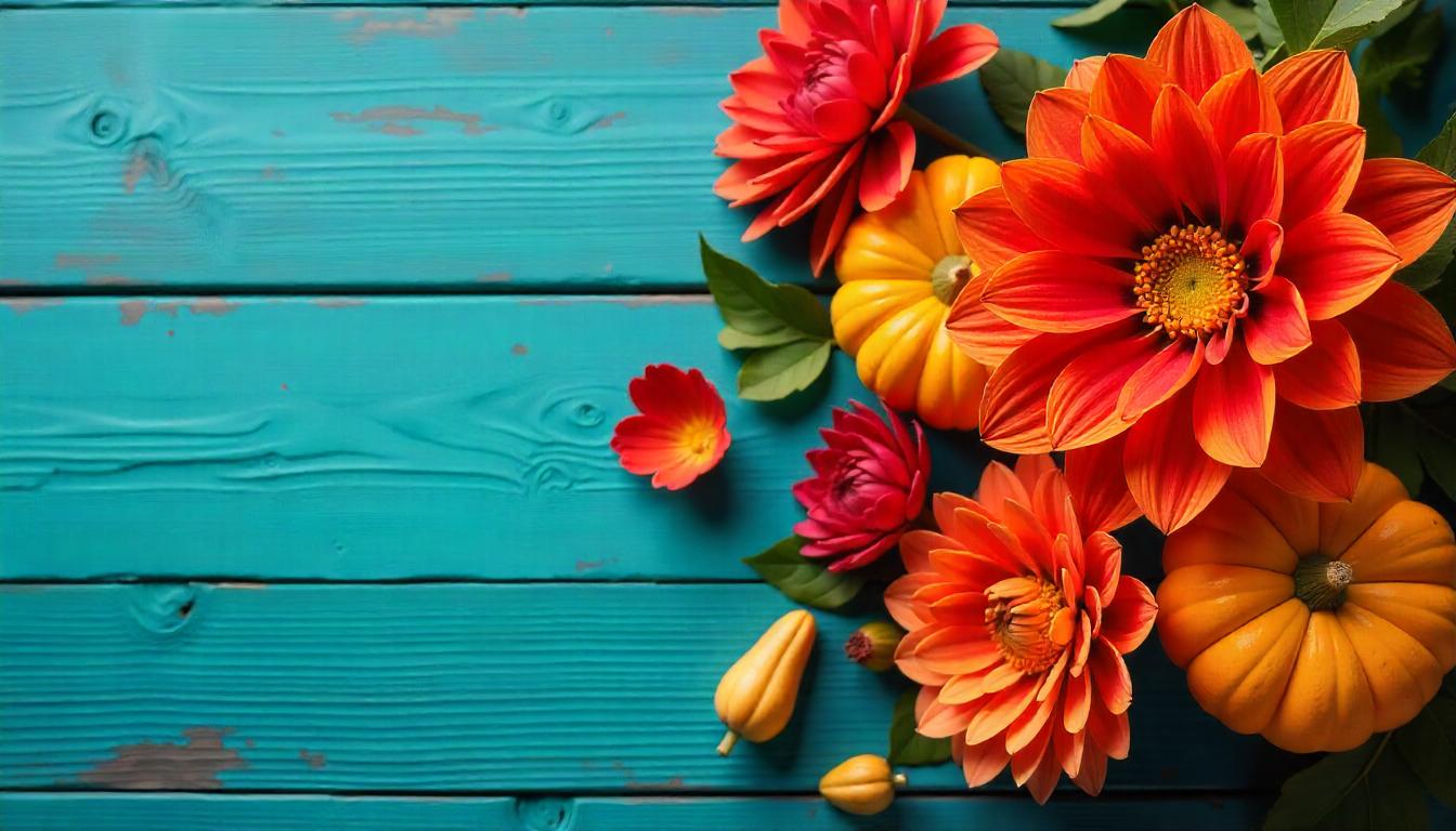 arrangement, autumn, backdrop, background, blue, decorative, design, fall, floral, flower, nature, orange, pumpkin, rustic, seasonal, still life, surface, texture, wood, wooden