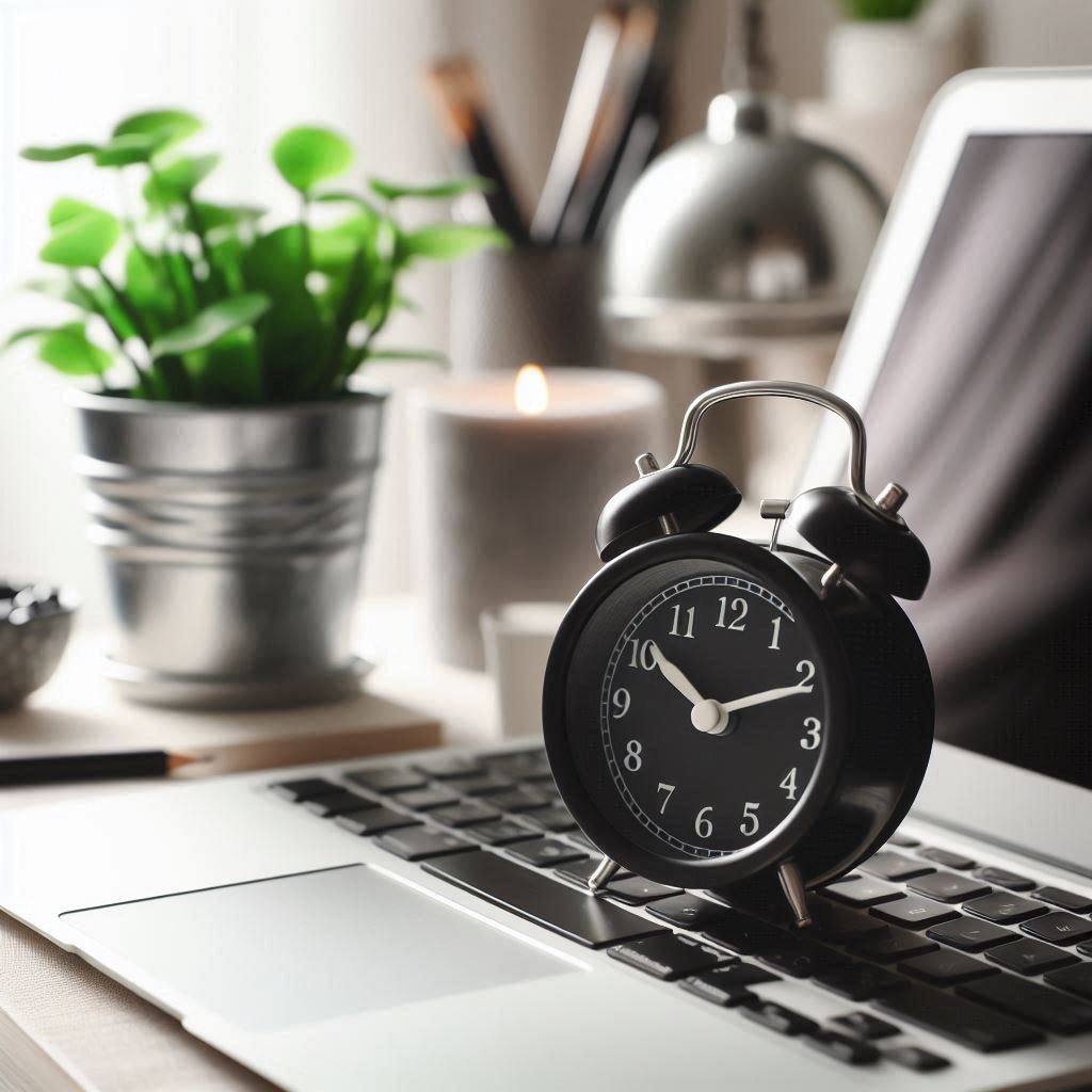 afternoon, alarm clock, bells, black, business, clock, deadline, desk, evening, hands, home, keyboard, laptop, morning, office, productivity, schedule, silver, time, work