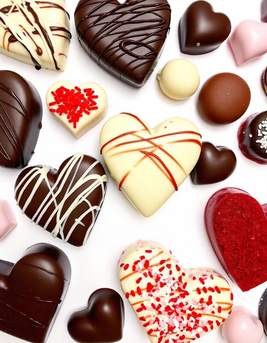 assortment, candy, chocolate, dark, decorations, delicious, dessert, flavors, gift, heart, hearts, love, red, sprinkles, sweet, sweets, treats, valentine's, variety, white