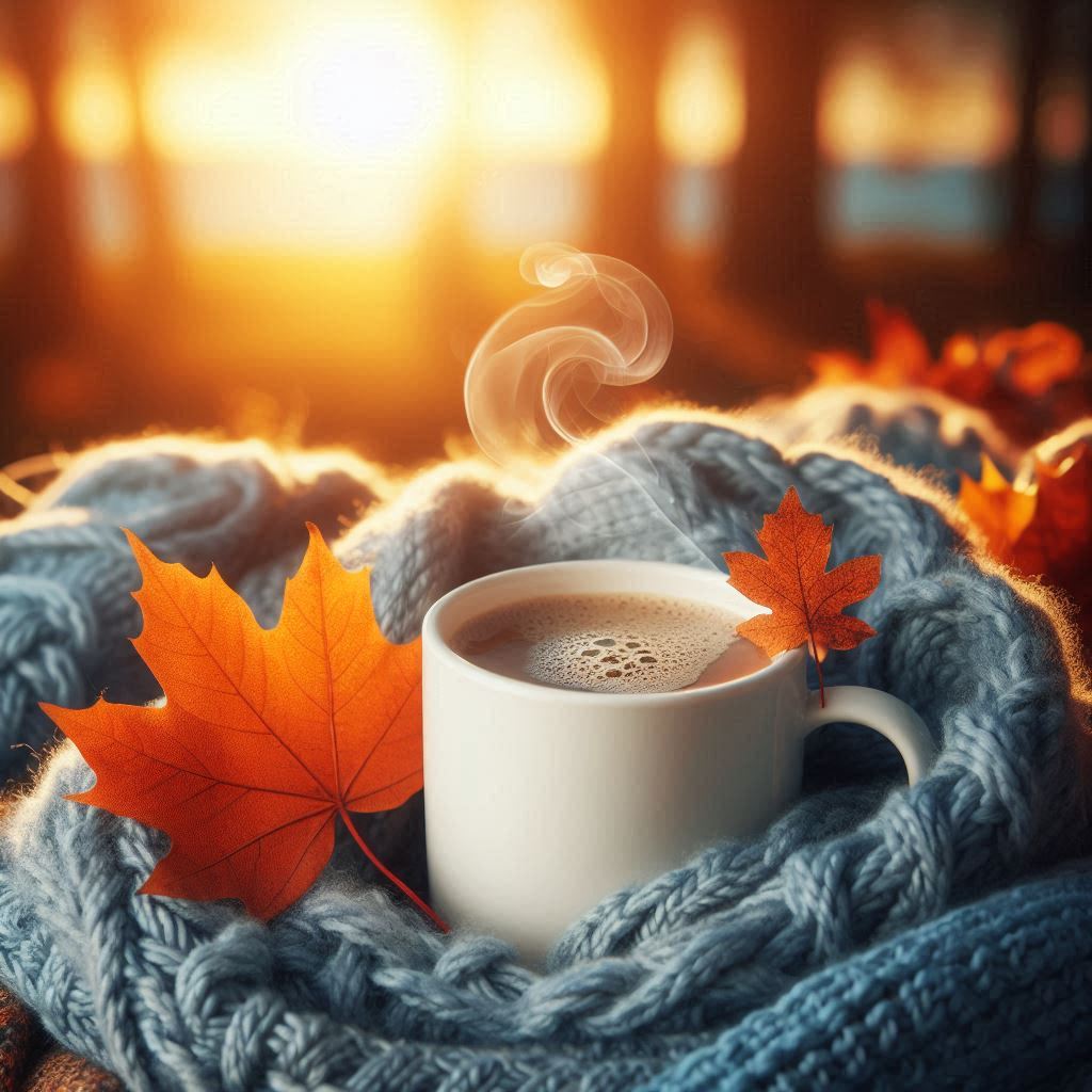 A warm cup of coffee on a cozy autumn day