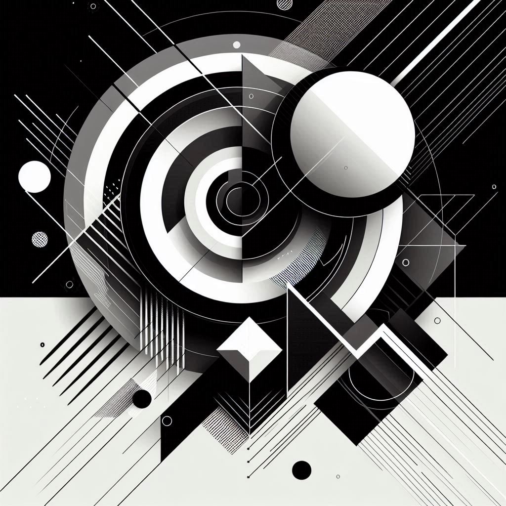 Black and white geometric pattern with shapes