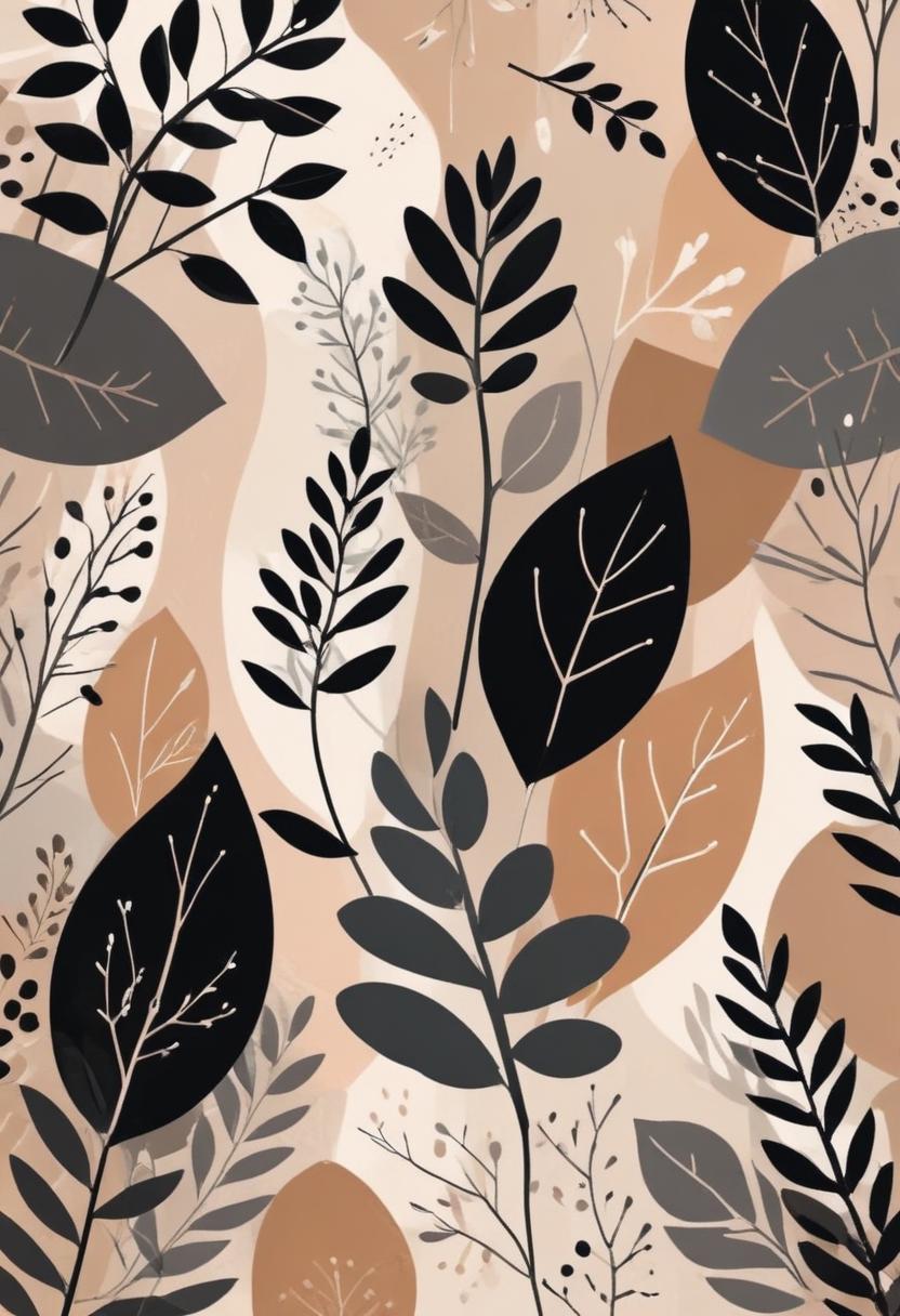 abstract, artwork, background, beige, black, botanical, brown, design, digital, foliage, graphic, illustration, leaves, minimalist, nature, organic, pattern, repeat, simple, stylized