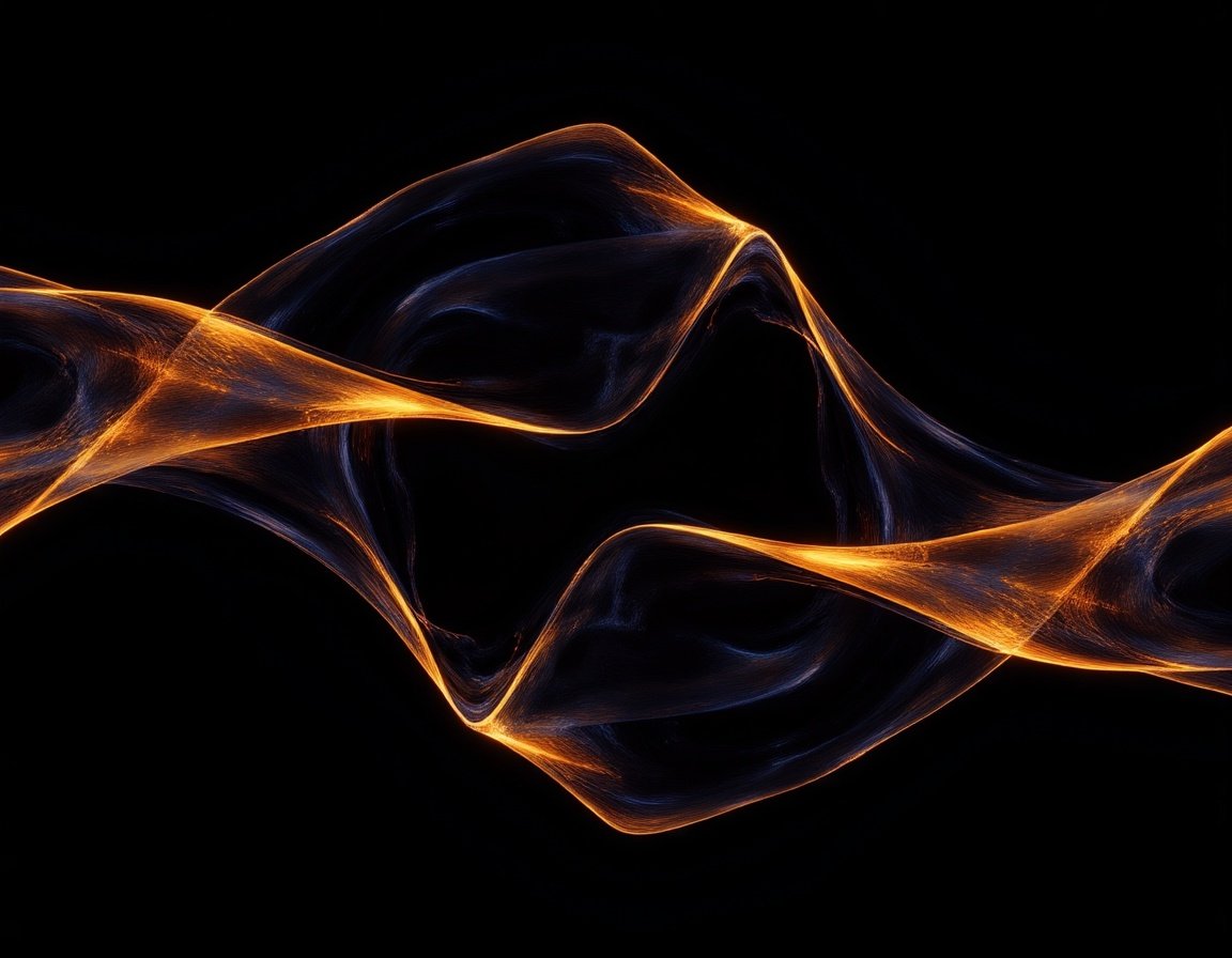 Golden light waves on a black background