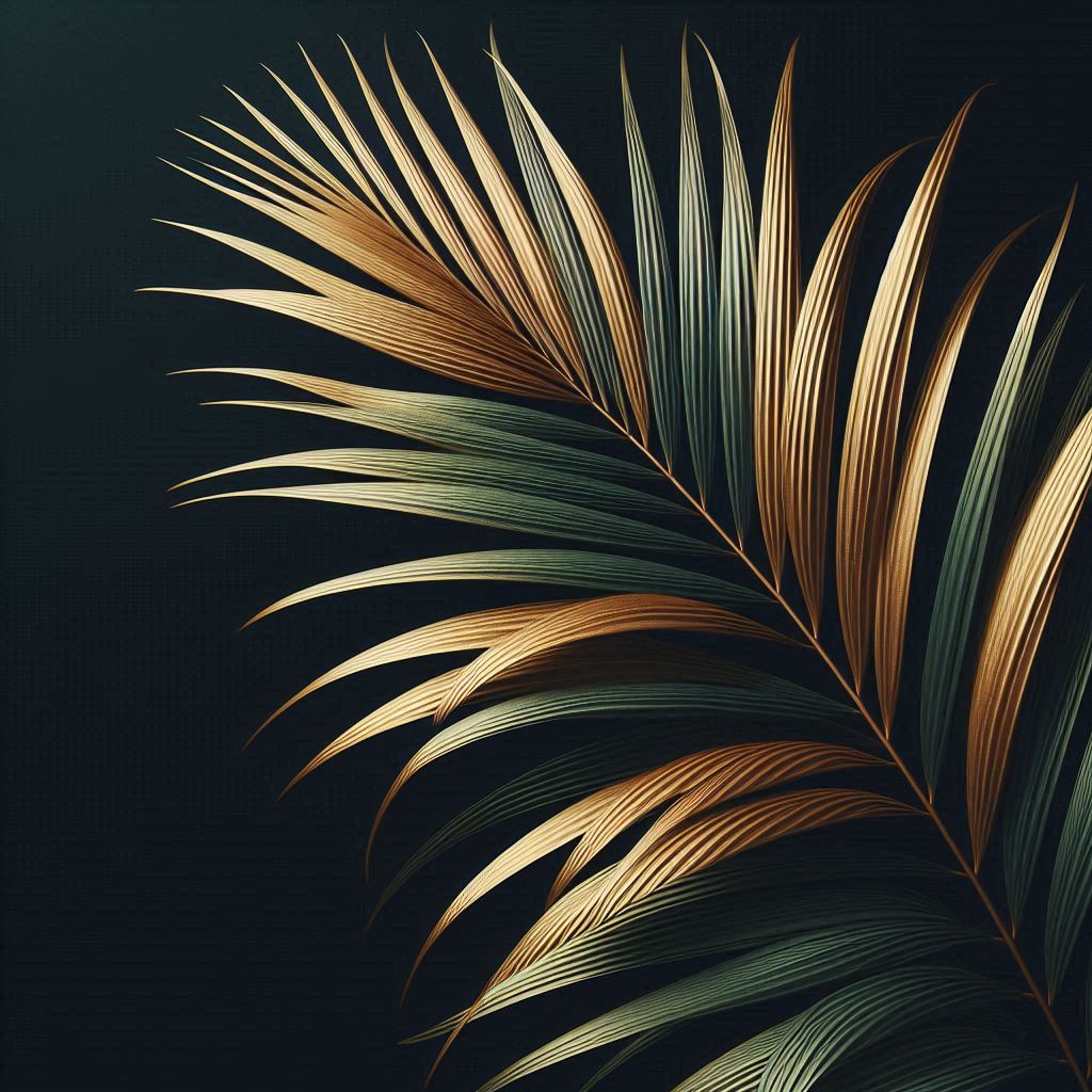 abstract, art, background, botanical, dark, design, foliage, frond, golden, green, leaf, minimal, nature, palm, pattern, plant, simple, texture, tips, tropical
