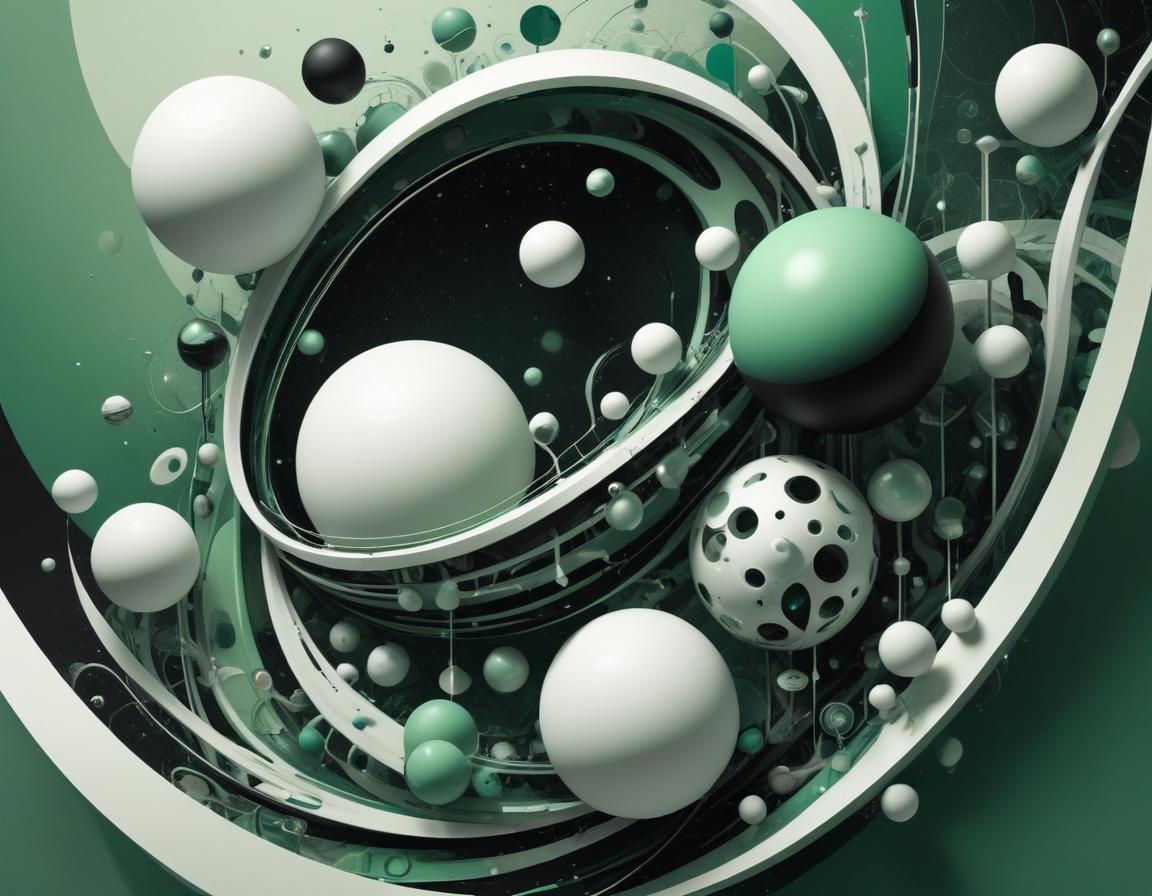 A swirling sphere arrangement in green hues