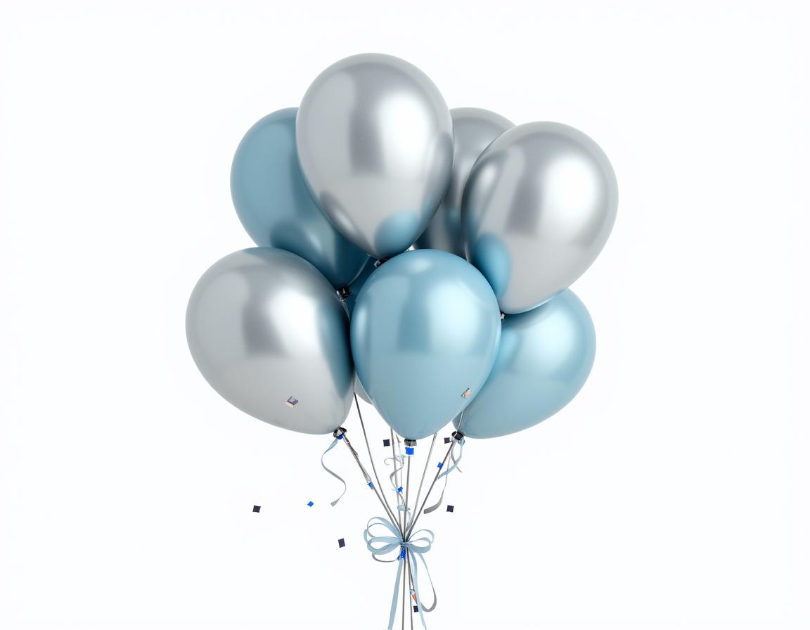 balloon bunch, balloons, birthday, birthday balloons, blue balloons, blue ribbon, celebration, celebration balloons, decor, event, festive, festive balloons, happy, happy balloons, party, party balloons, party decorations, party supplies, ribbon, silver balloons