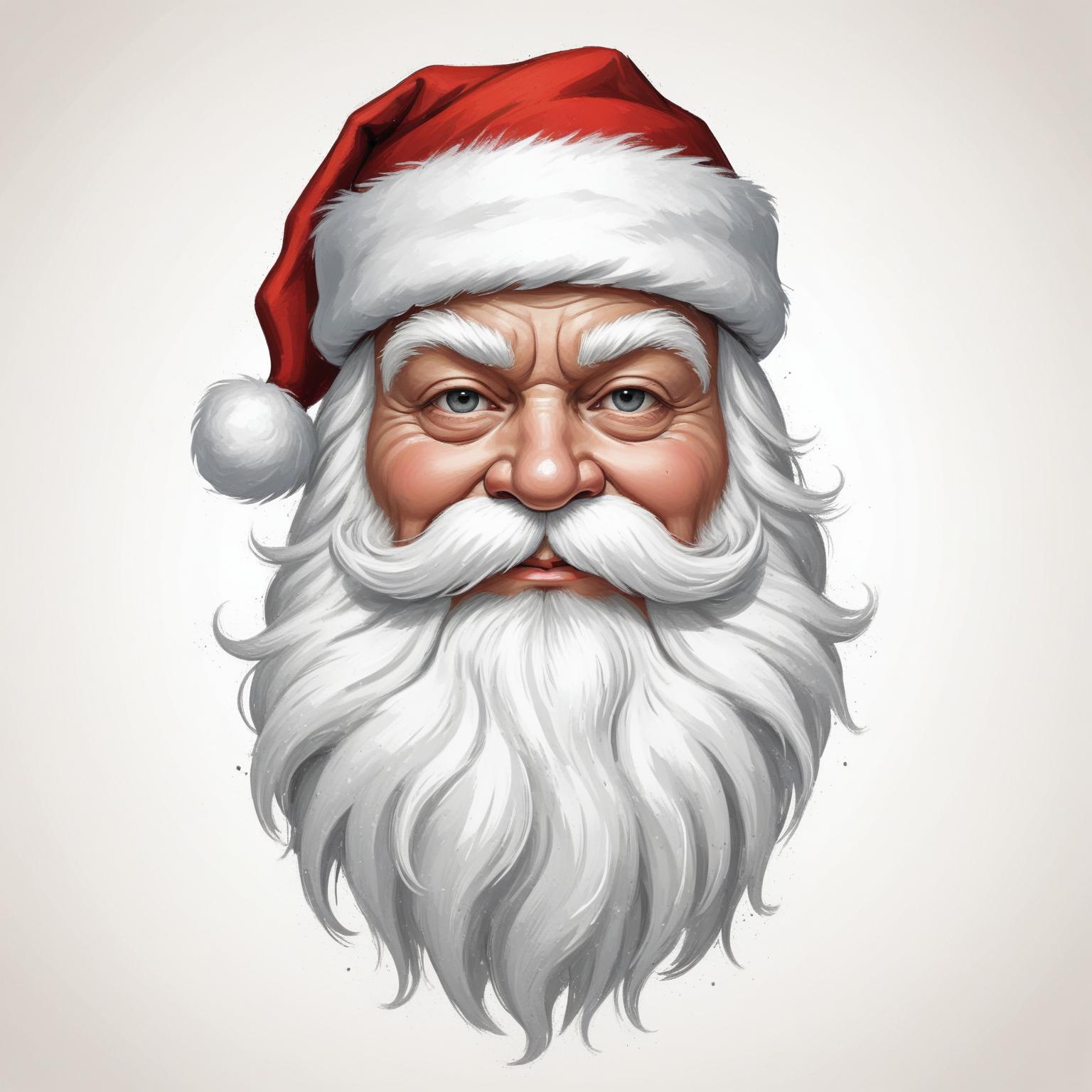 A portrait of Santa Claus with a white beard and a red hat with white trim. His expression is serious.