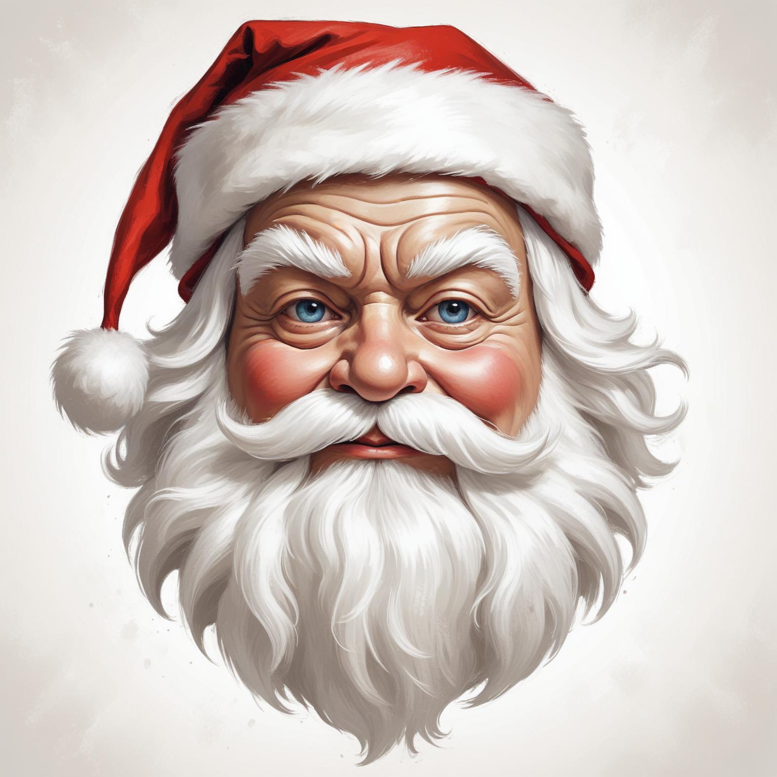 A close-up portrait of Santa Claus with a white beard and mustache, wearing a red hat with white trim.