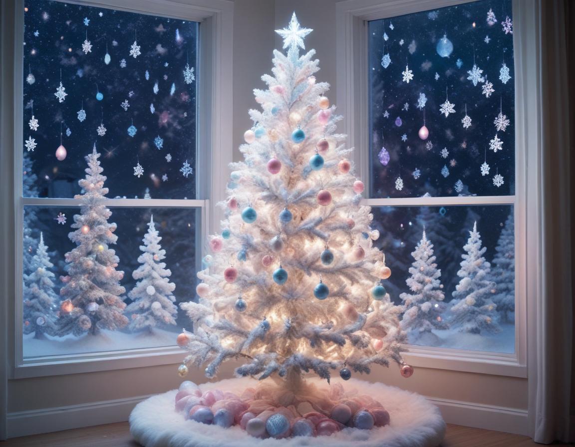 blue, celebration, christmas, cozy, december, decorations, festive, holiday, home, indoor, lights, night, ornaments, season, snow, snowflake, tree, white, window, winter