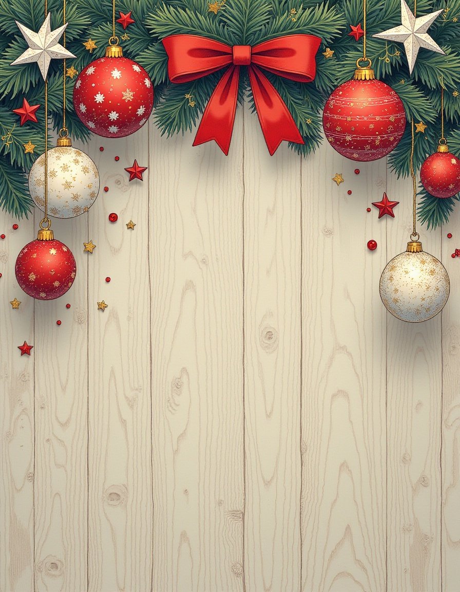 background, bow, branches, celebration, christmas, december, decoration, design, festive, garland, graphic, holiday, illustration, ornaments, pine, red, season, wall, winter, wooden