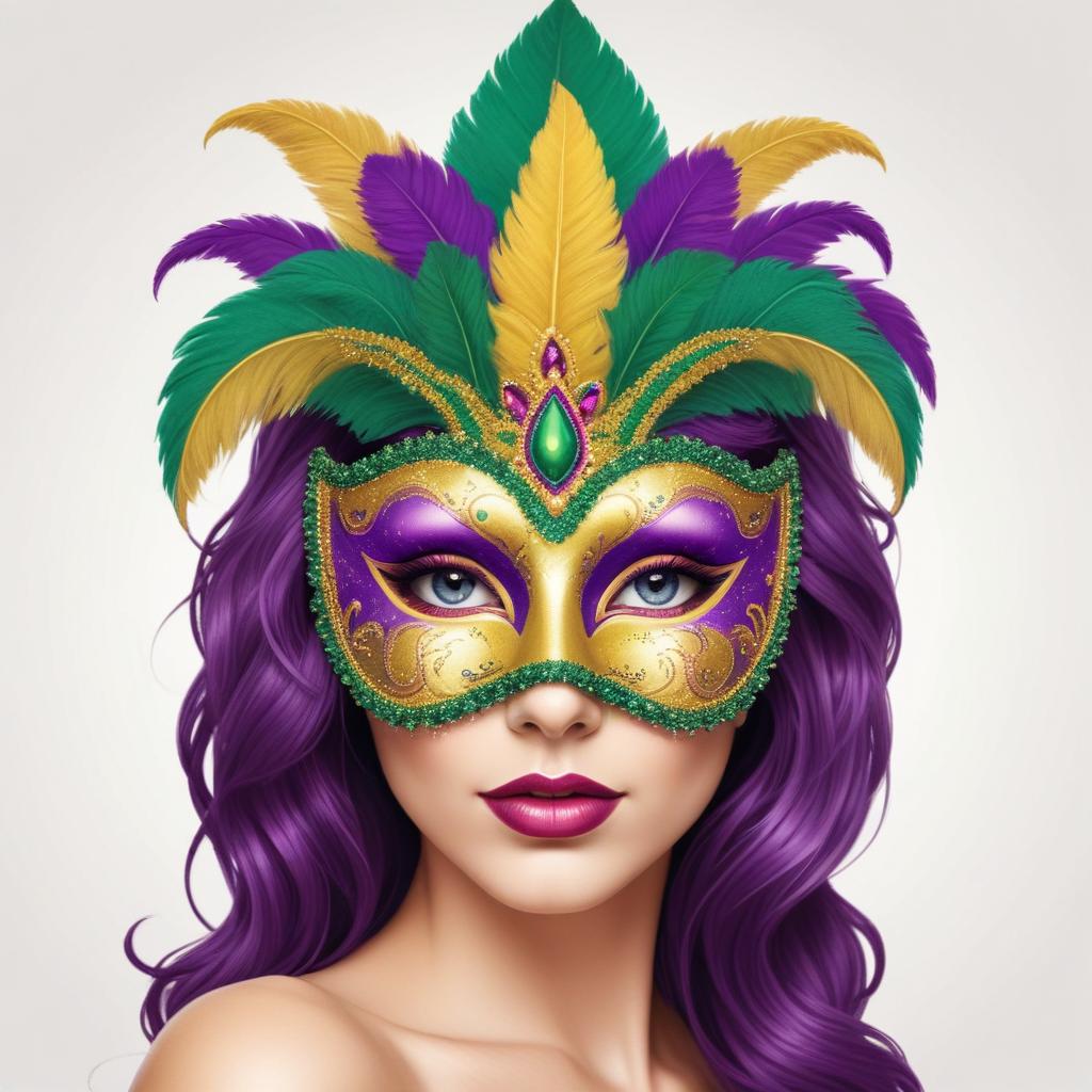 carnival, celebration, costume, disguise, eyes, face, fancy dress, feathered, festive, gold, green, hair, mardi gras, mask, masquerade, party, purple, venetian, woman, woman's fashion
