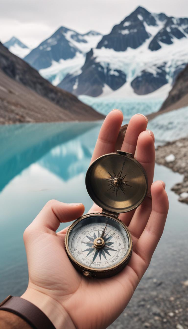 adventure, compass, direction, east, exploration, glacier, hand, journey, lake, landscape, mountains, nature, north, outdoors, scenery, snow, south, travel, west, wilderness