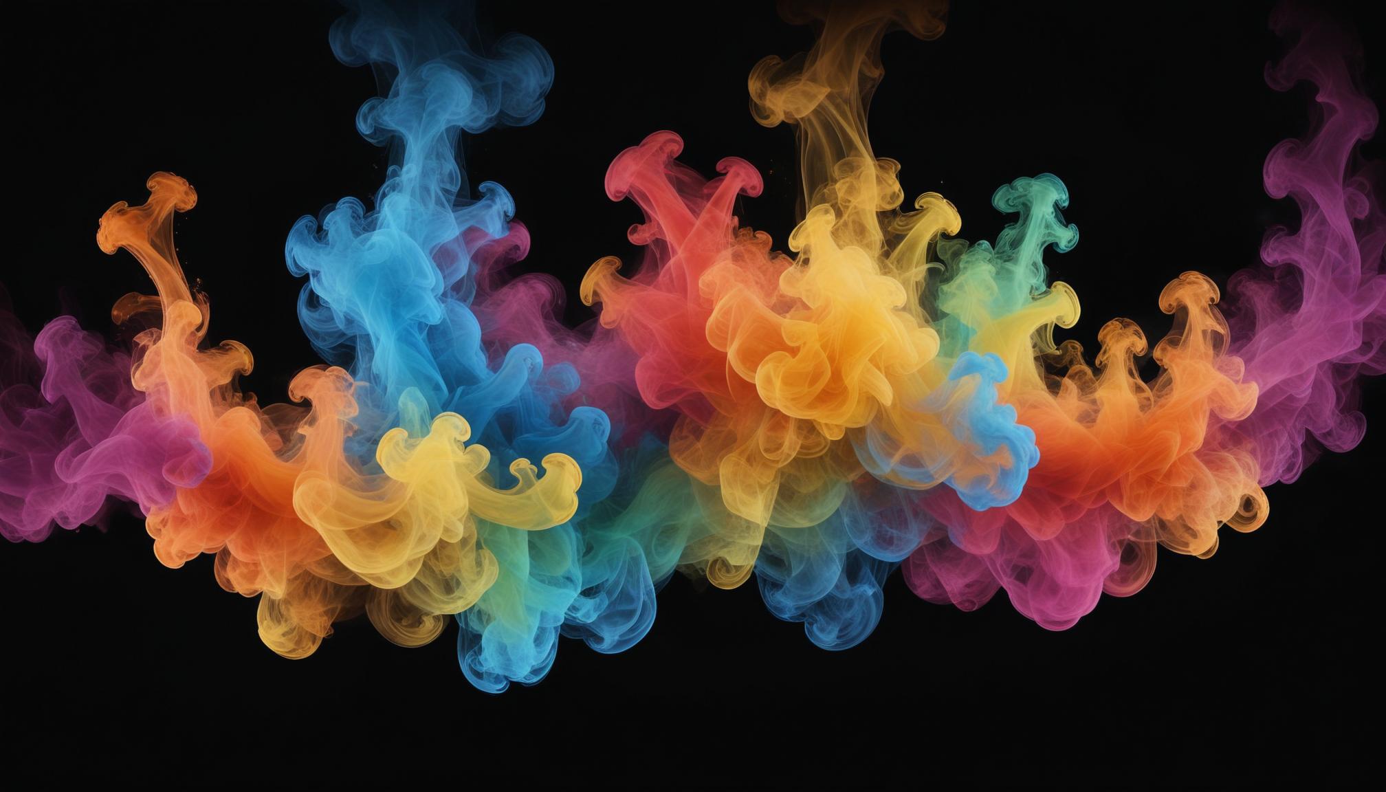 Colorful ink swirls against a black background