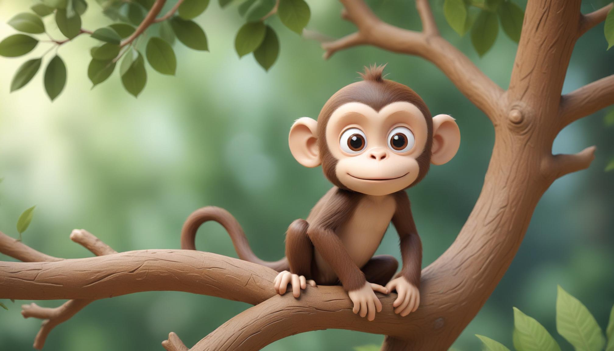 adorable, animal, branch, brown, cute, eyes, forest, furry, green, happy, jungle, leaves, mammal, monkey, nature, sitting, smiling, tail, tree, wildlife