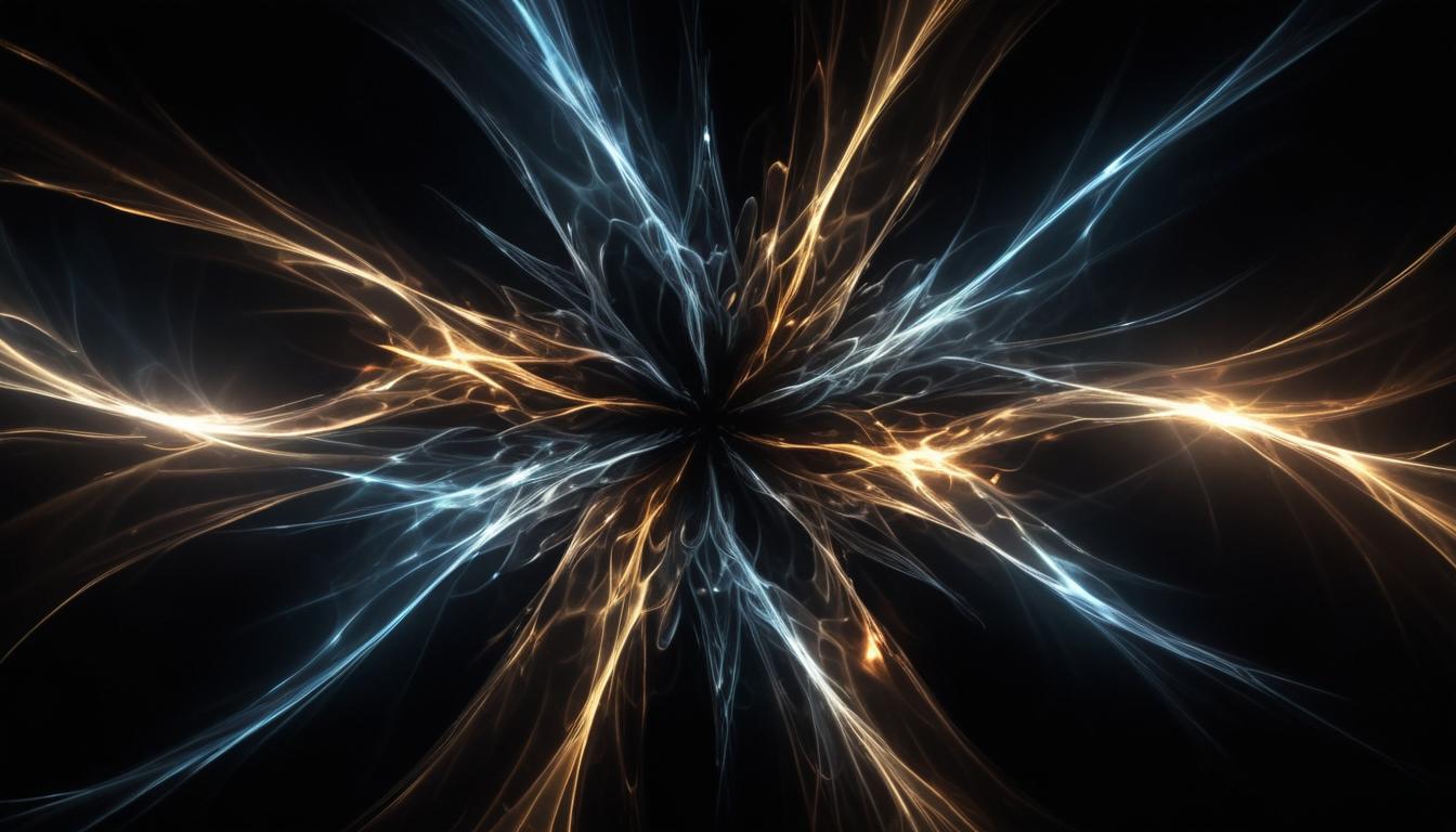 A digital image features glowing lines of blue and gold that create a swirling, abstract pattern.